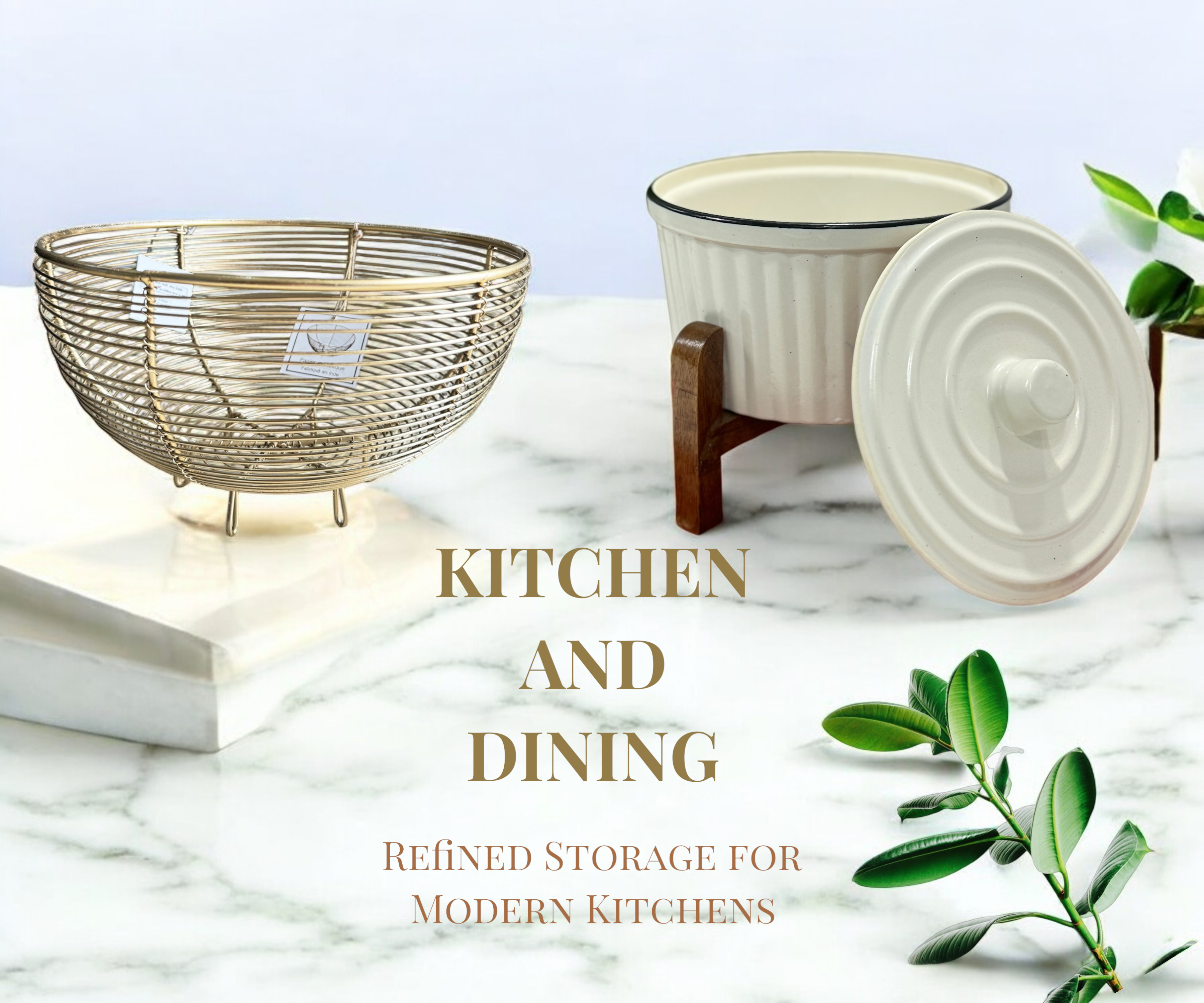 Ceramic Green Kitchen Bowl with Wooden Stand